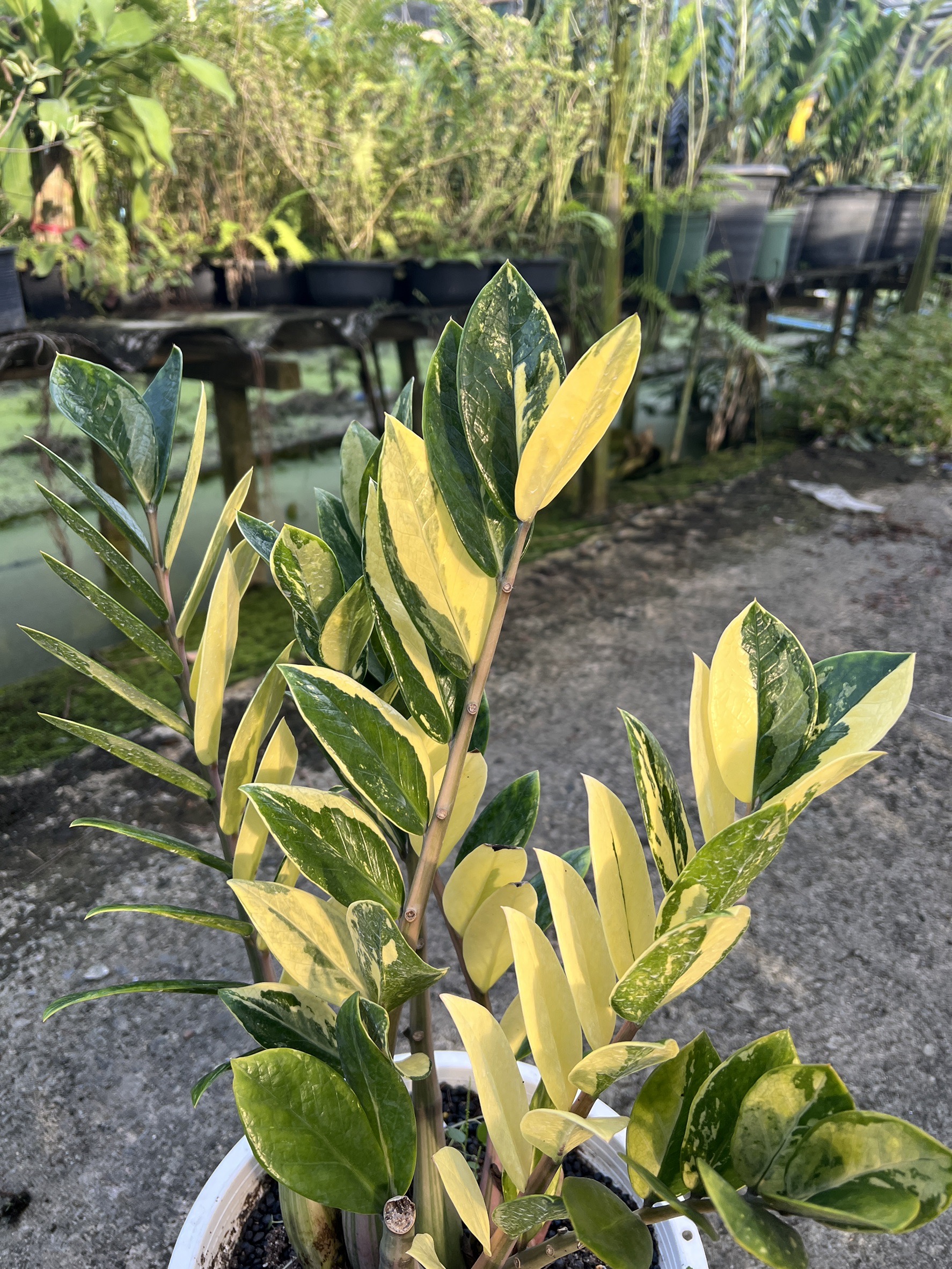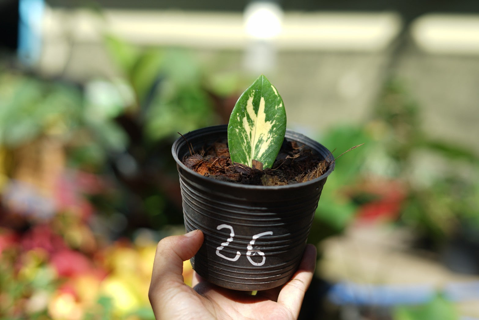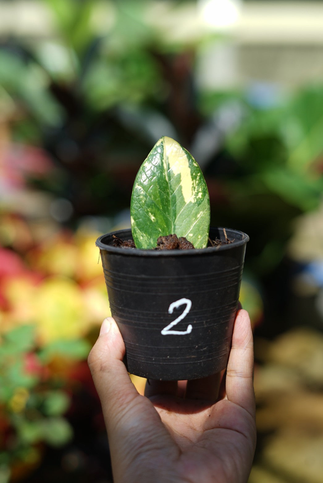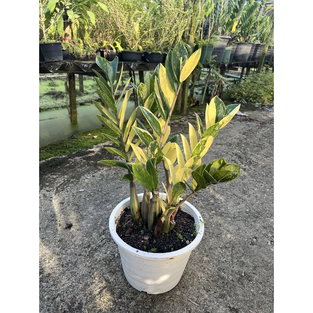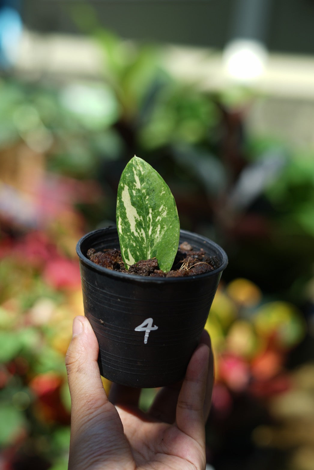 กระถางดำ 4 นิ้ พร้อม กวักมรกตด่าง ด่างสวย เทพมาก มีตุ่มแล้ว