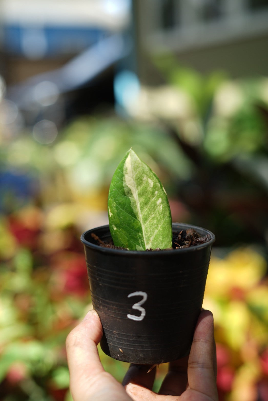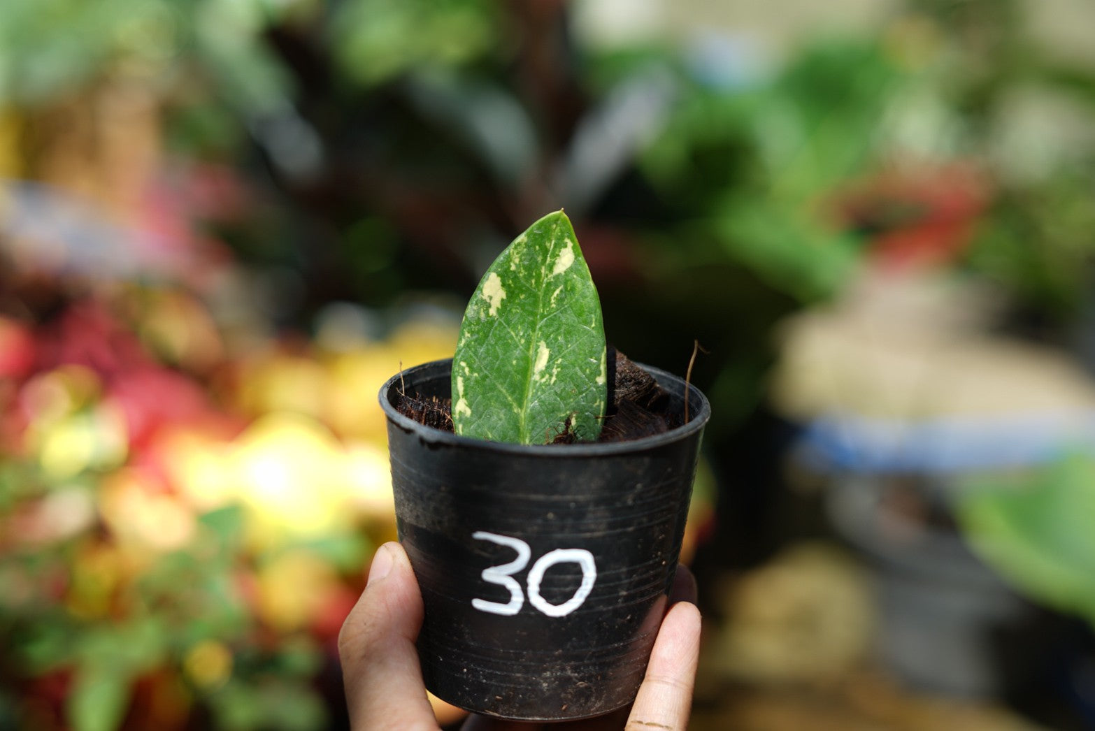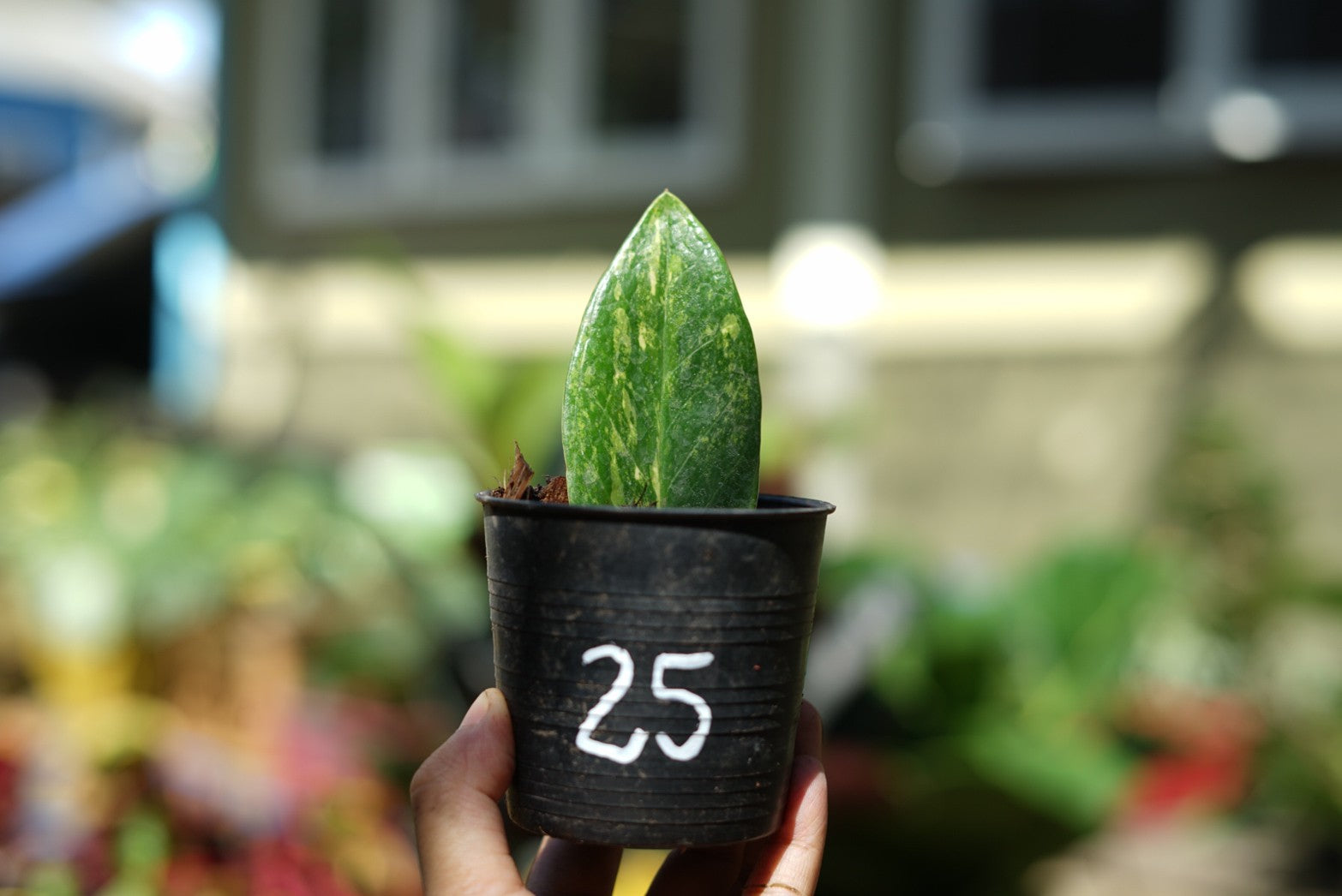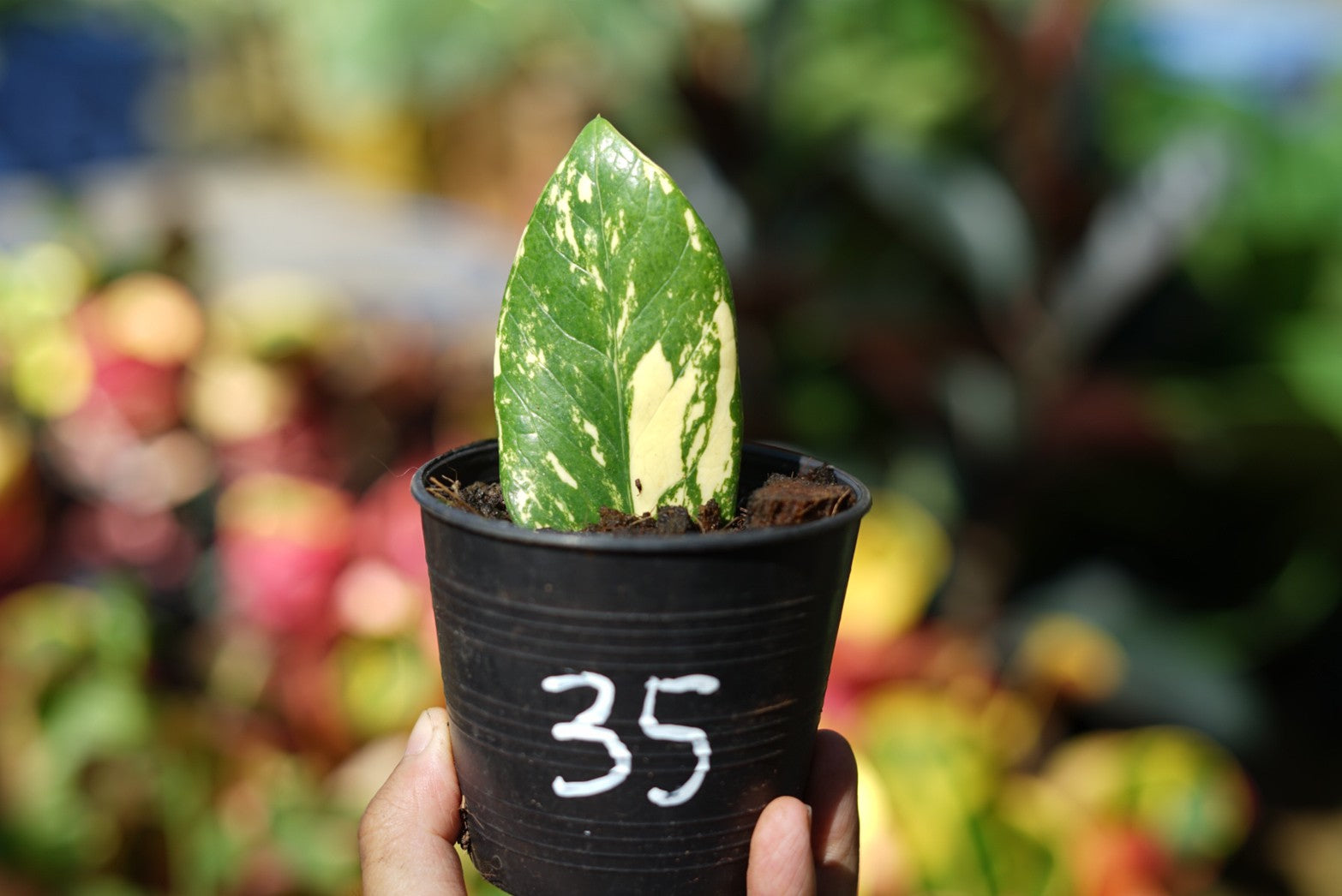 กระถางดำ 4 นิ้ พร้อม กวักมรกตด่าง ด่างสวย เทพมาก มีตุ่มแล้ว