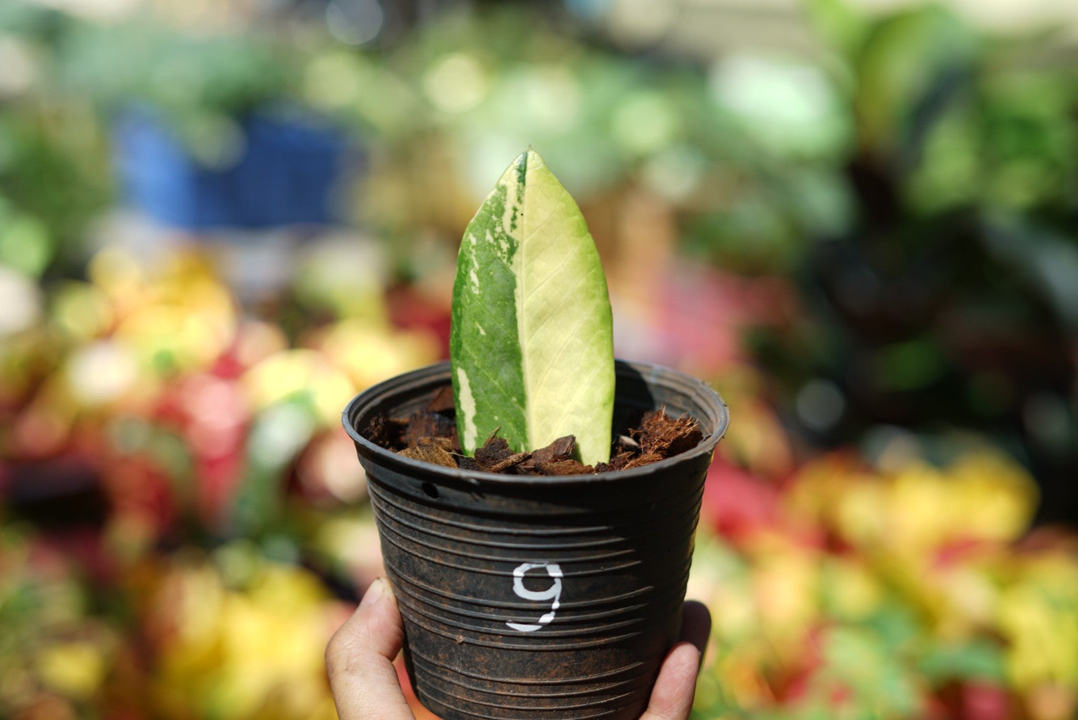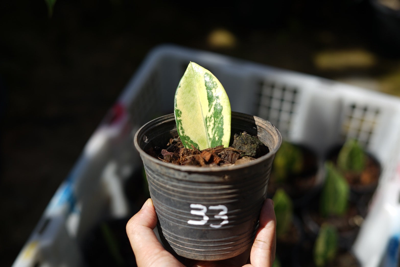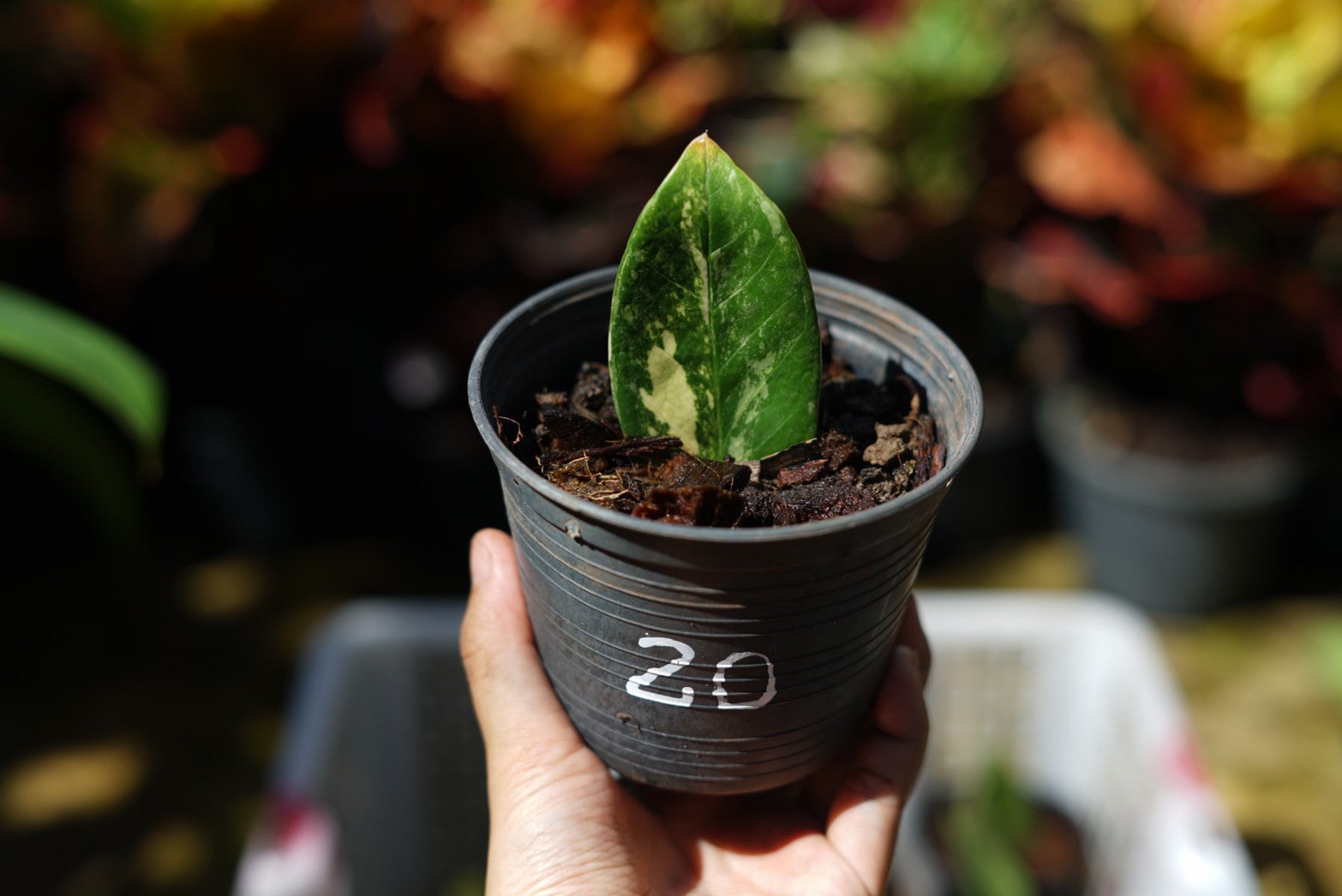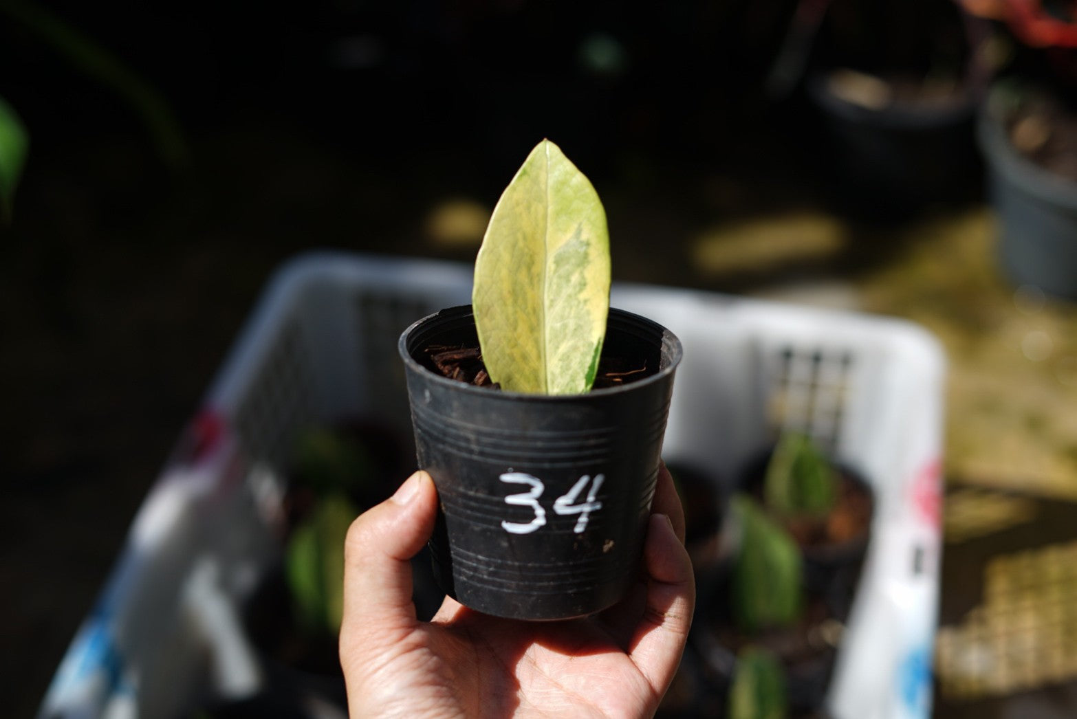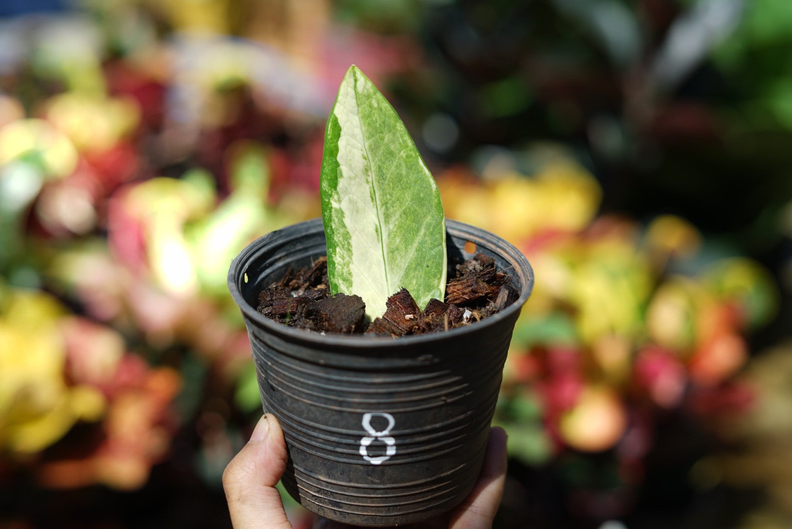 กระถางดำ 4 นิ้ พร้อม กวักมรกตด่าง ด่างสวย เทพมาก มีตุ่มแล้ว