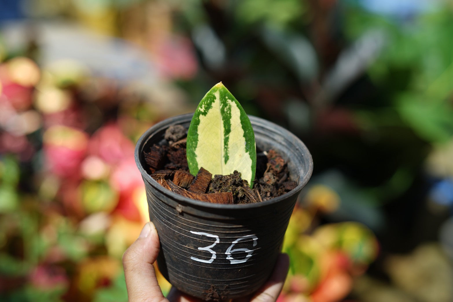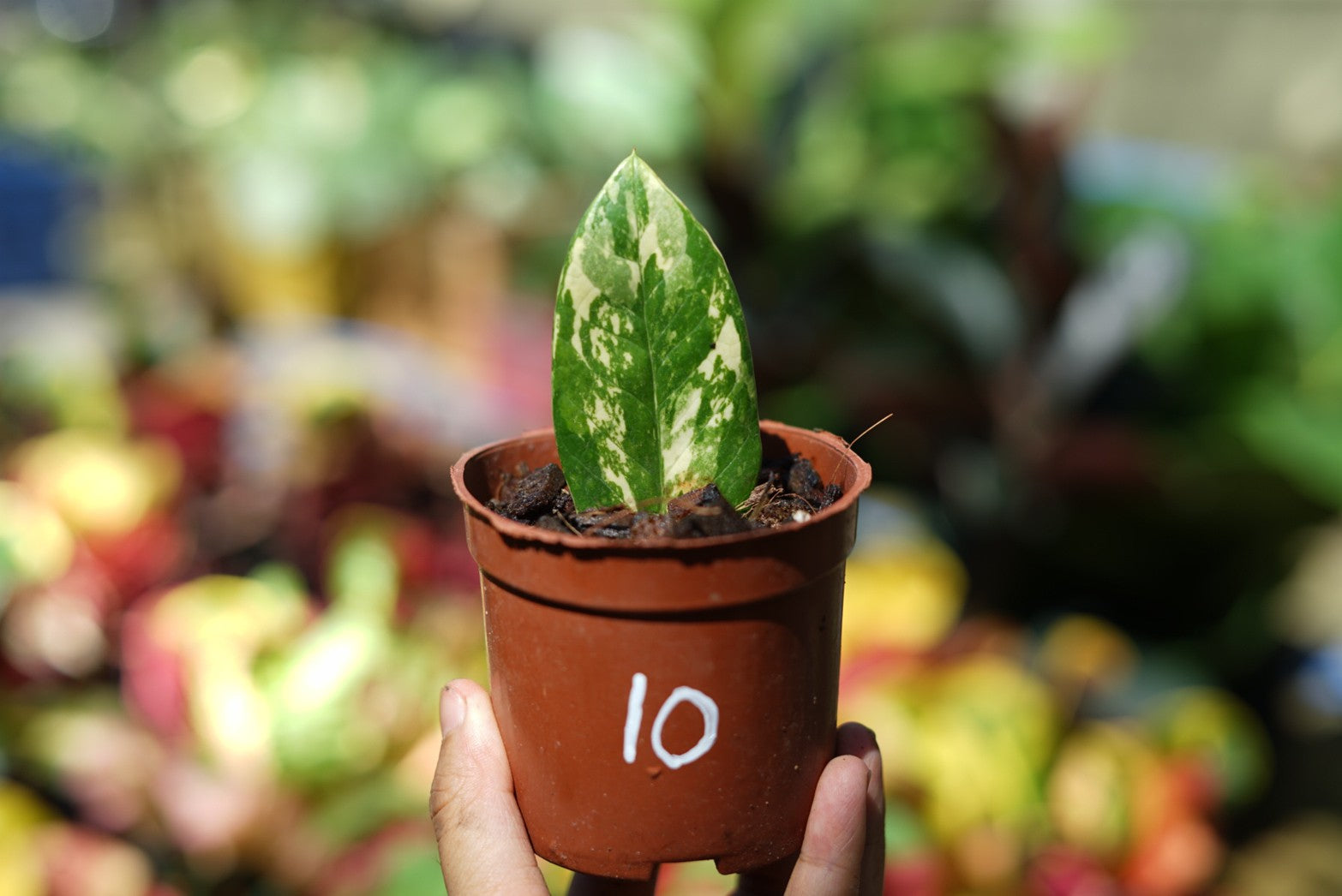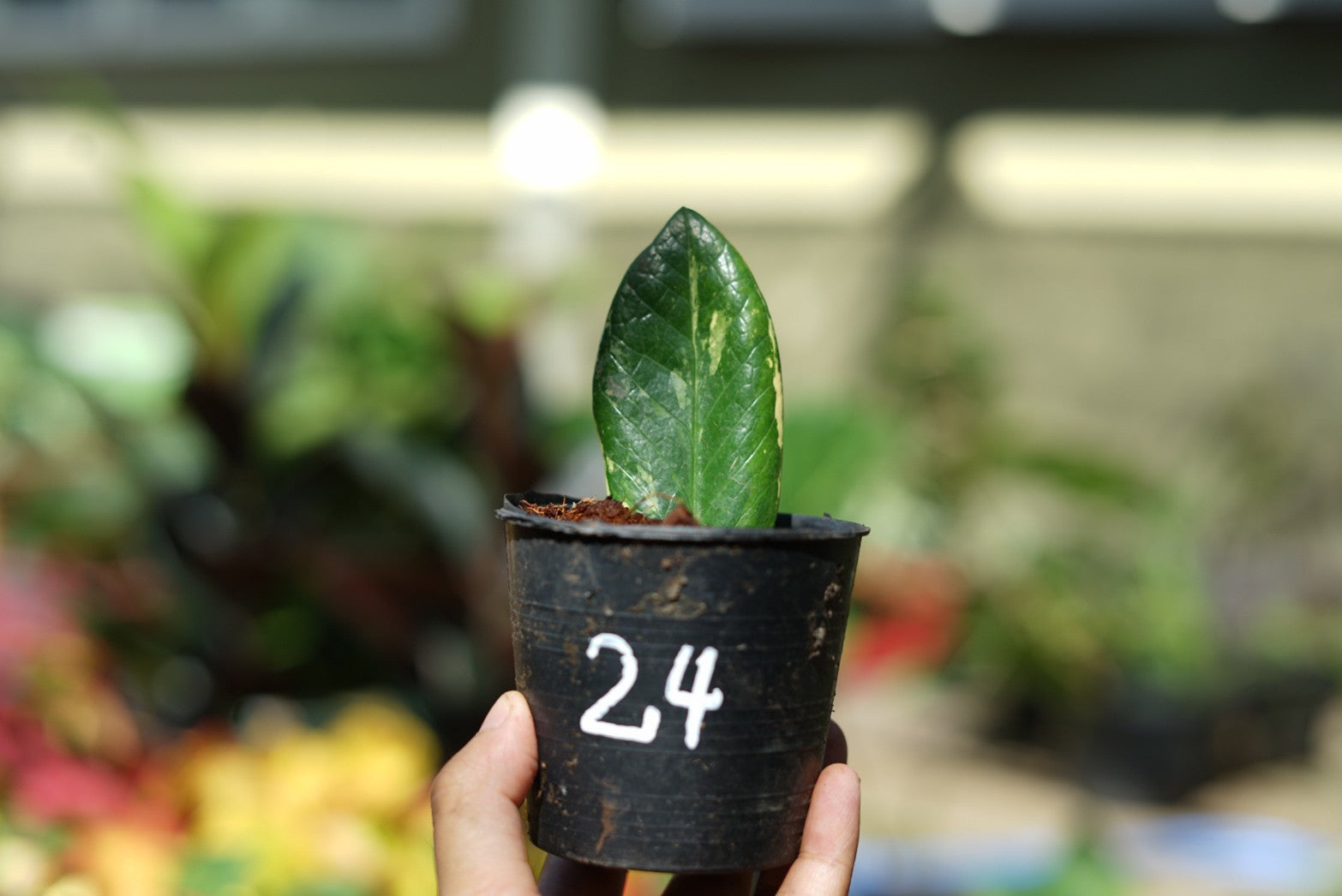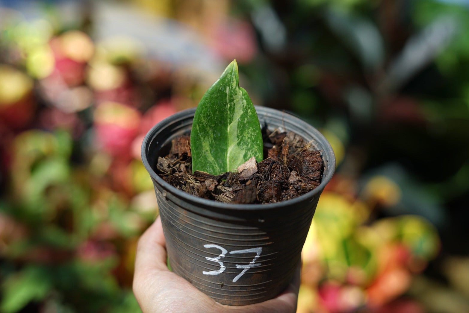 กระถางดำ 4 นิ้ พร้อม กวักมรกตด่าง ด่างสวย เทพมาก มีตุ่มแล้ว
