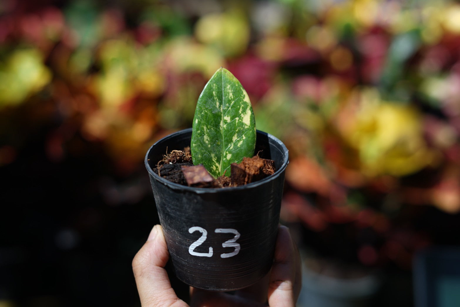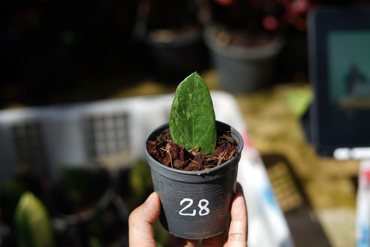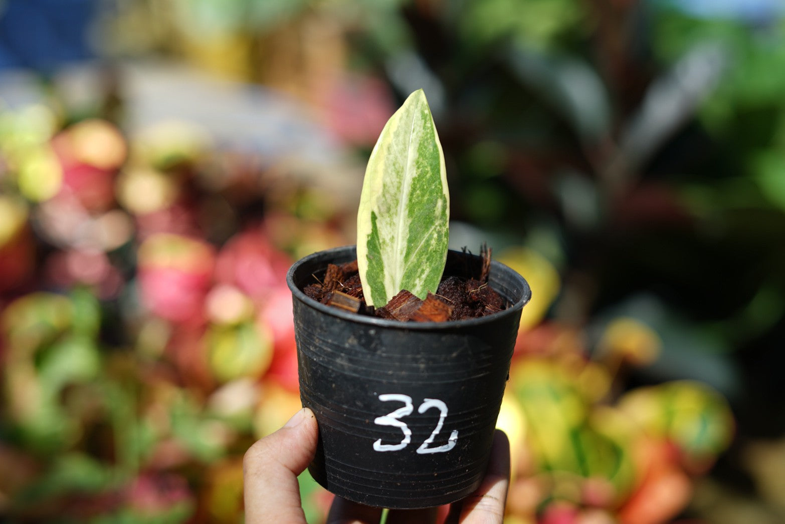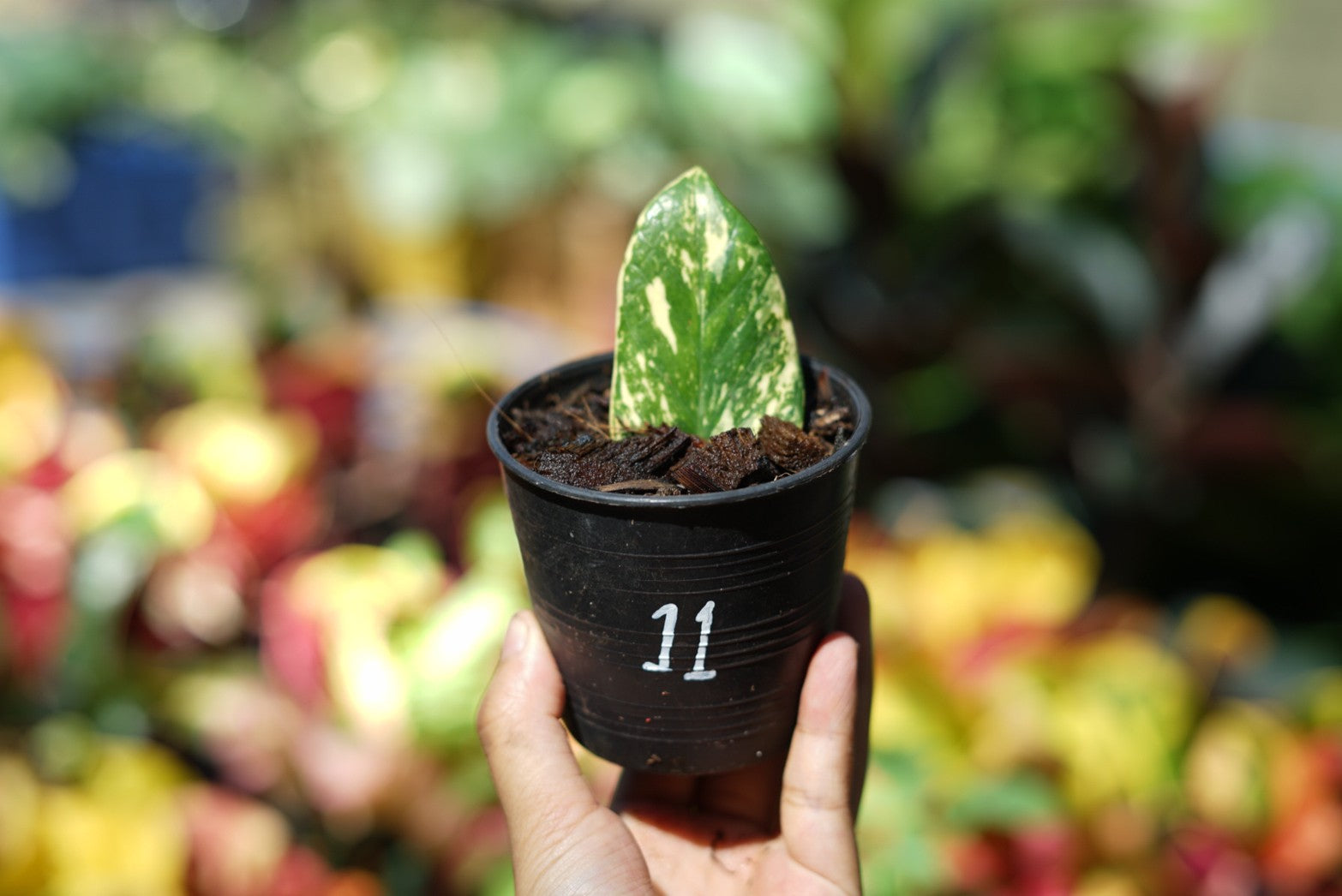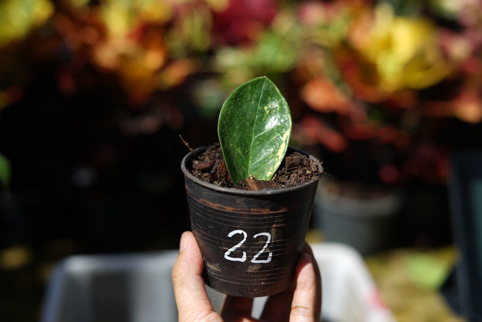 กระถางดำ 4 นิ้ พร้อม กวักมรกตด่าง ด่างสวย เทพมาก มีตุ่มแล้ว