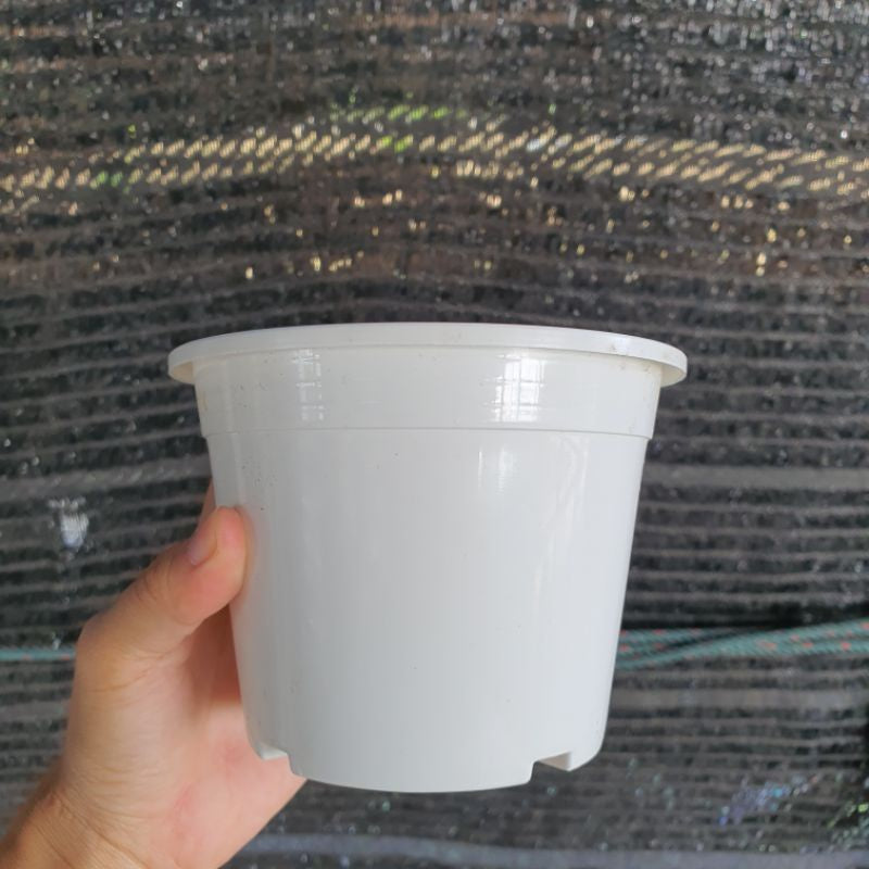 กระถางพลาสติกสีขาว ขนาด 6 นิ้ว อย่างดี มีรูระบายน้ำ