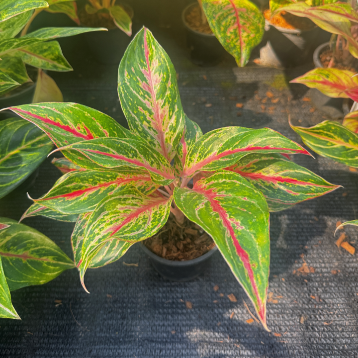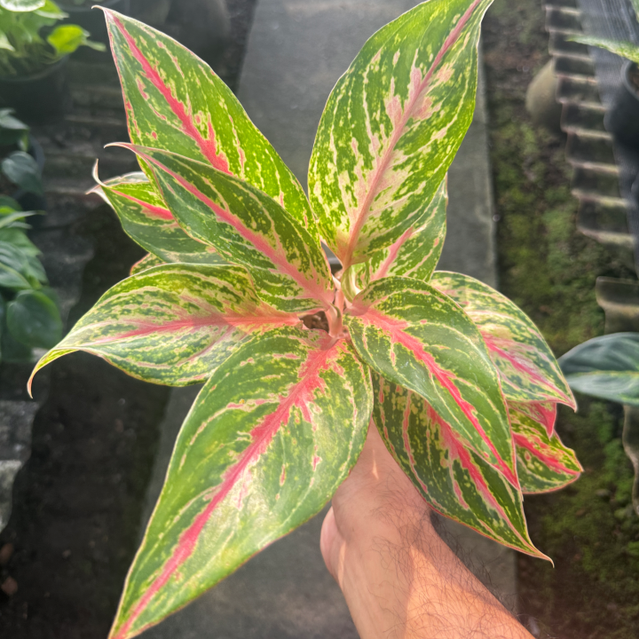 TH: อโกลนีม่า กวักมหามงคล เป็นไม้ประดับที่มีใบสวยงามและมีความเป็นสิริมงคลสูง ใบมีสีเขียวเข้มและมีลายด่างสีชมพูแดงอมขาวโดดเด่น เชื่อกันว่าช่วยเสริมเรื่องการเงินและโชคลาภ เป็นต้นไม้ที่ปลูกง่าย เหมาะสำหรับตกแต่งภายในบ้านหรือในออฟฟิศ