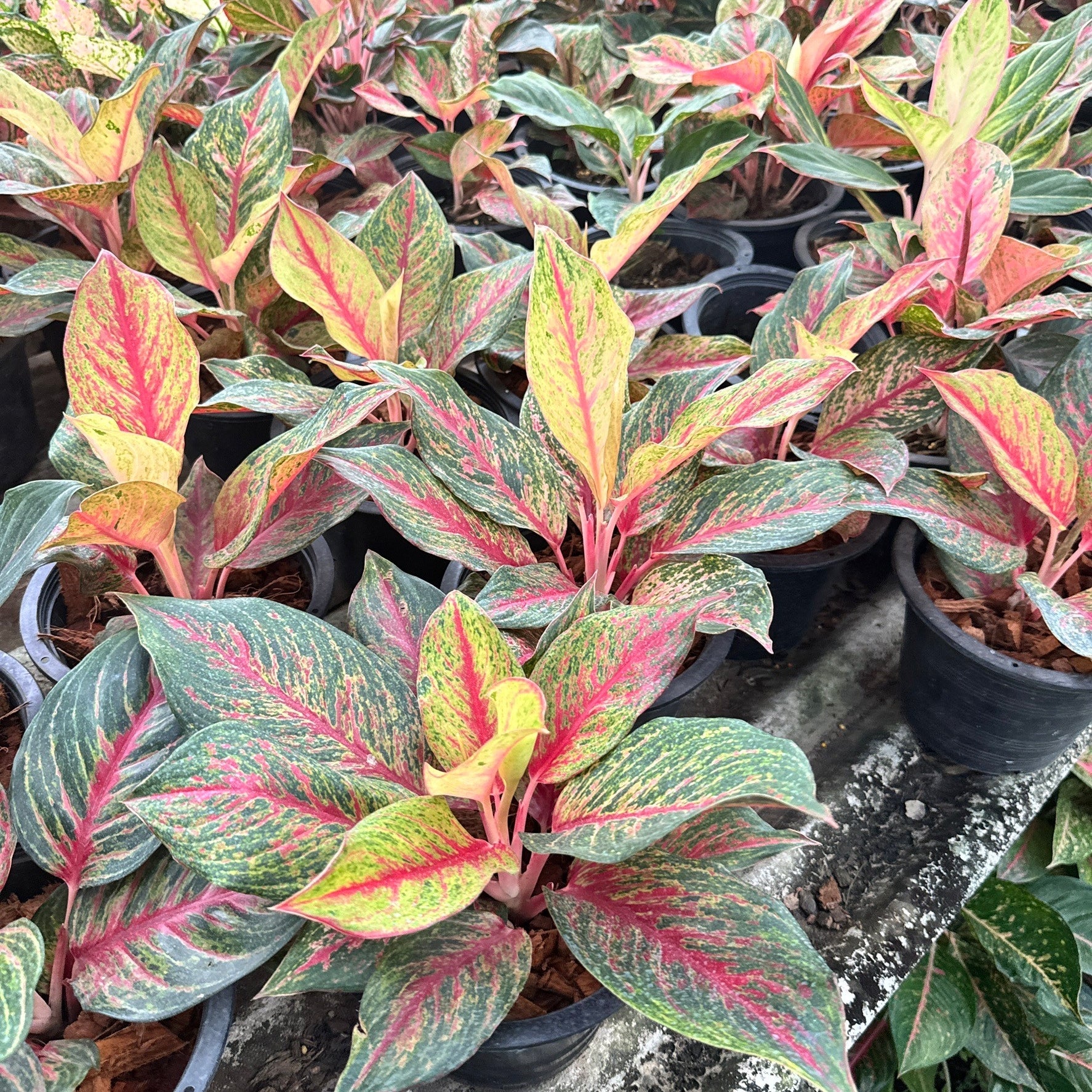 TH: อโกลนีม่าเป็นไม้ประดับในร่มยอดนิยม มีใบลวดลายสวยงามหลายเฉดสีตั้งแต่เขียวเข้ม แดง ชมพู ไปจนถึงขาว ลำต้นอวบอ้วน แข็งแรง ดูแลง่าย ทนต่อแสงน้อย เหมาะสำหรับวางในบ้าน
