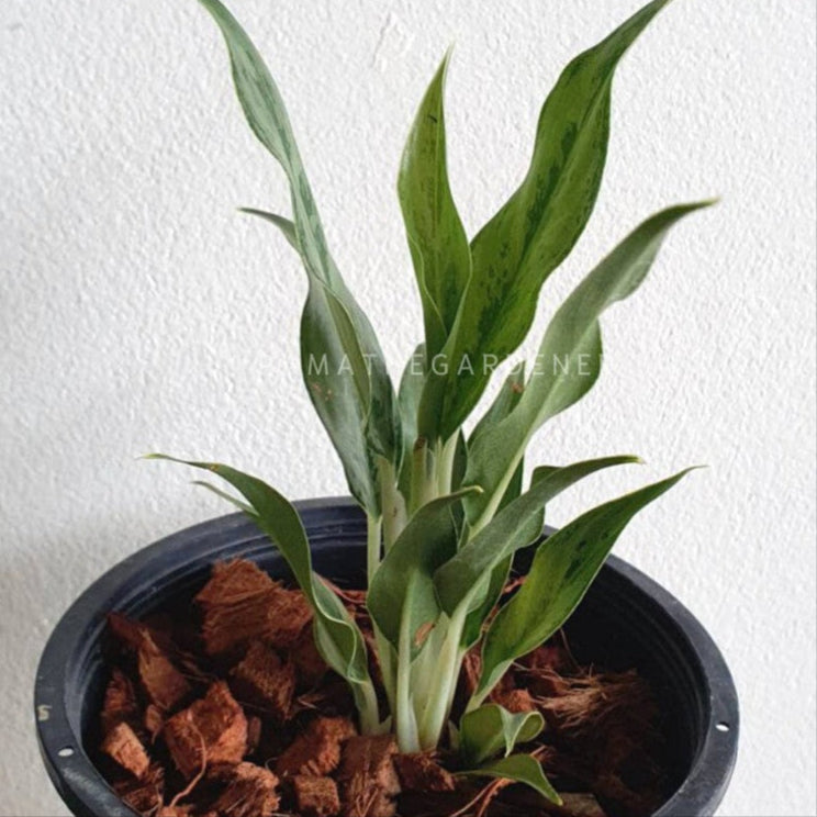 EN: Aglaonema 'Silver Bay' is a striking Chinese Evergreen variety known for its broad green leaves with silvery centers. It’s low-maintenance and thrives in low-light conditions, making it ideal for homes and offices.