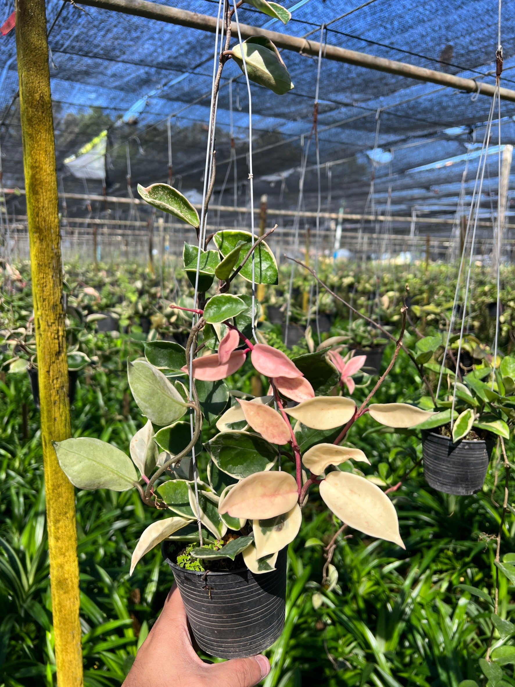 ต้นโฮย่าใบด่าง ในกระถาง 4 นิ้ว มาพร้อมลวดแขวนนะคะ ได้ไปสามารถแขวนได้เลย
